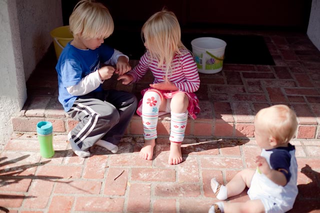 Aidric painting Juliet's nails on the front porch while Cormac refuses to sit in one place for longer than 2 seconds.